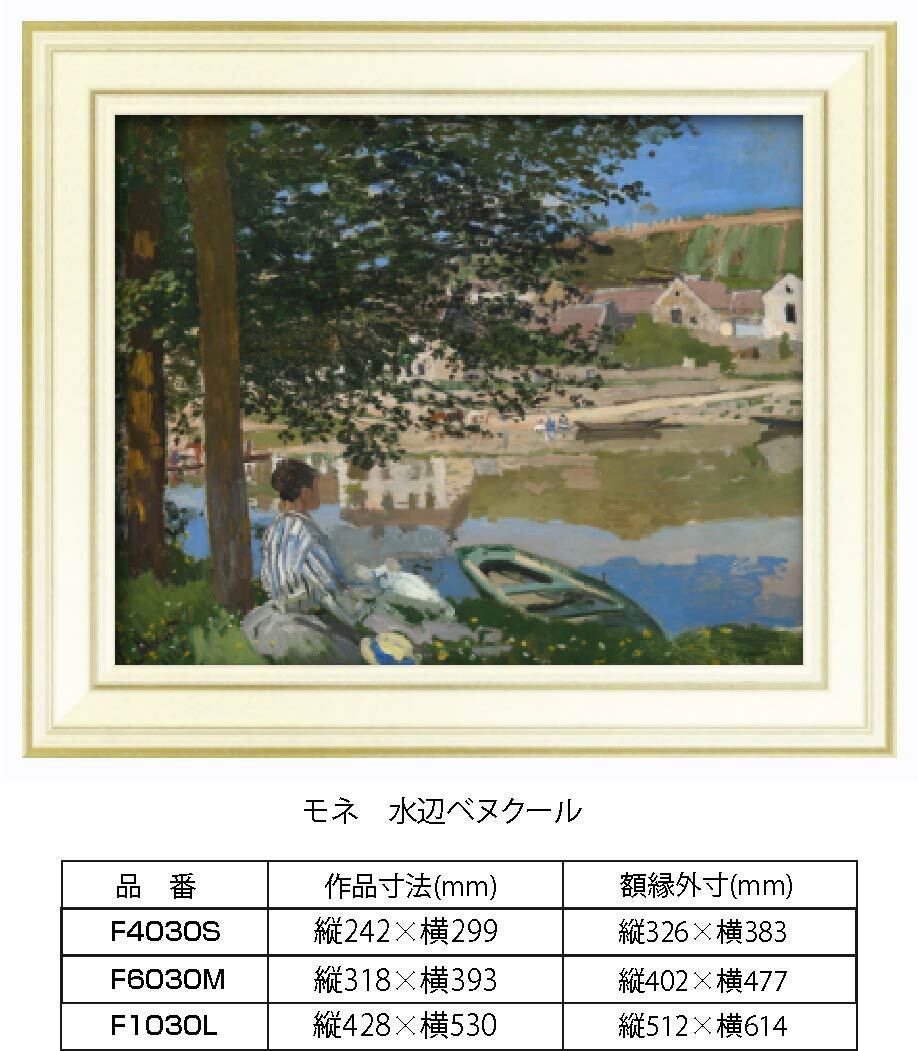 複製画 モネ 水辺ベヌクール F6030M 額縁付き 額縁サイズ縦402mm×横477mm